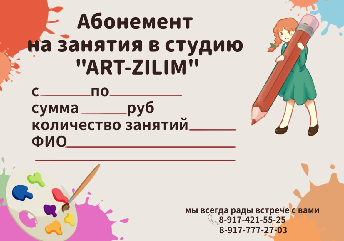 Наша студия видит в каждом ребенке творческое начало. Изобразительное искусство поможет развить мелкую моторику, речевой аппарат, улучшает память и повышает устойчивость к стрессу. Наша художественная студия приглашает юных художников на занятия.